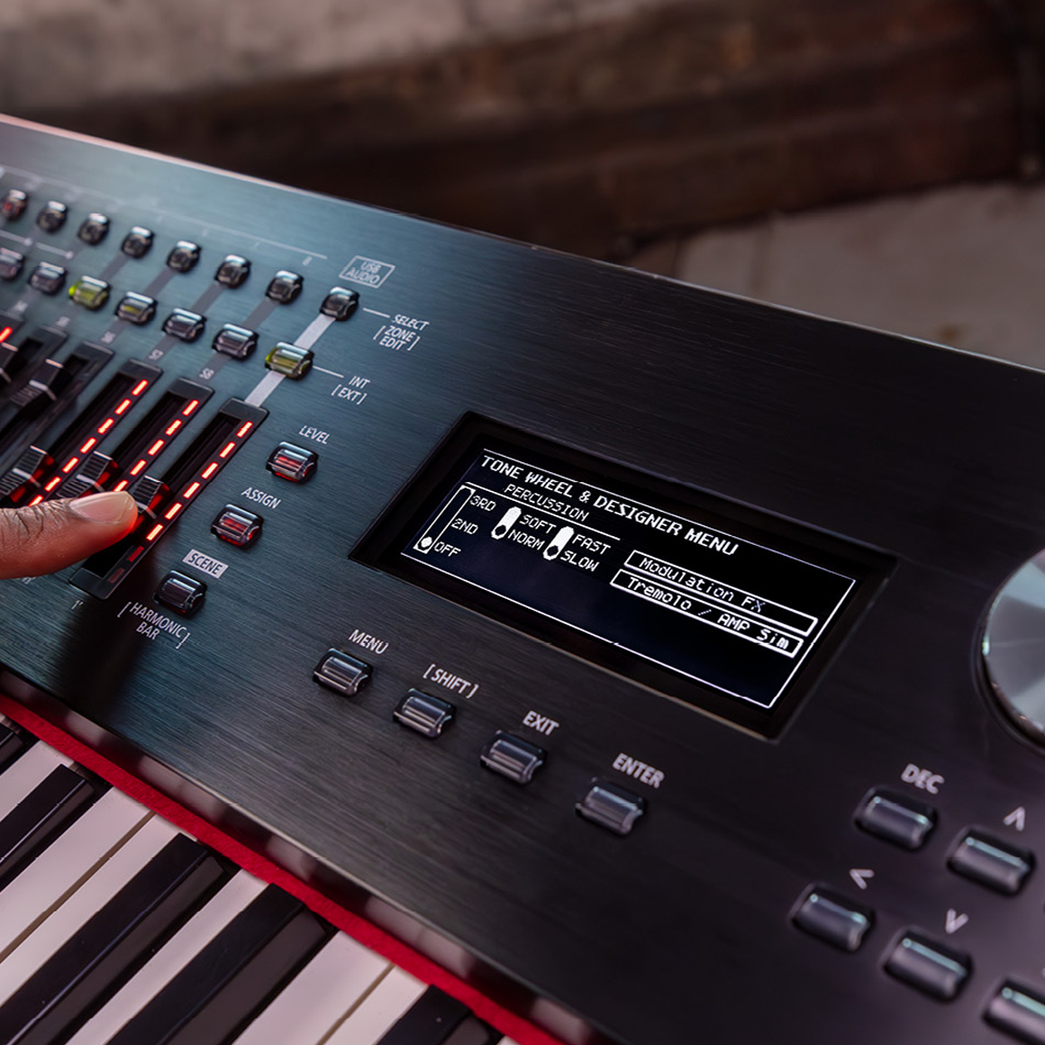 RD-2000 EX 不僅僅是一部鋼琴,還包含超過 1100 種 SuperNATURAL 音色可詮釋各種音樂風格。喚出來自 VK 系列的 Virtual ToneWheel 虛擬音輪風琴,搭配迴旋喇叭效果,和透過面板推桿進行真實的 drawbar 控制。涵蓋現代和復古合成器電子音源。並可使用古鋼琴、大鍵琴,和其他鍵盤樂器、管弦樂和銅管樂器、世界音樂音源等來探索更多風格。