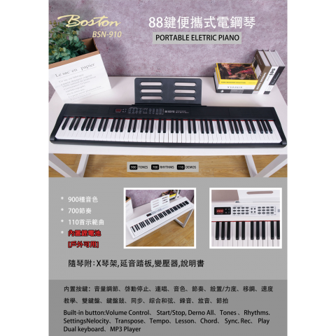 Boston BSN-910 業界最高CP值 入門首選便攜式數位鋼琴 新手必買 初學電鋼琴 入門電鋼琴 新手電鋼琴