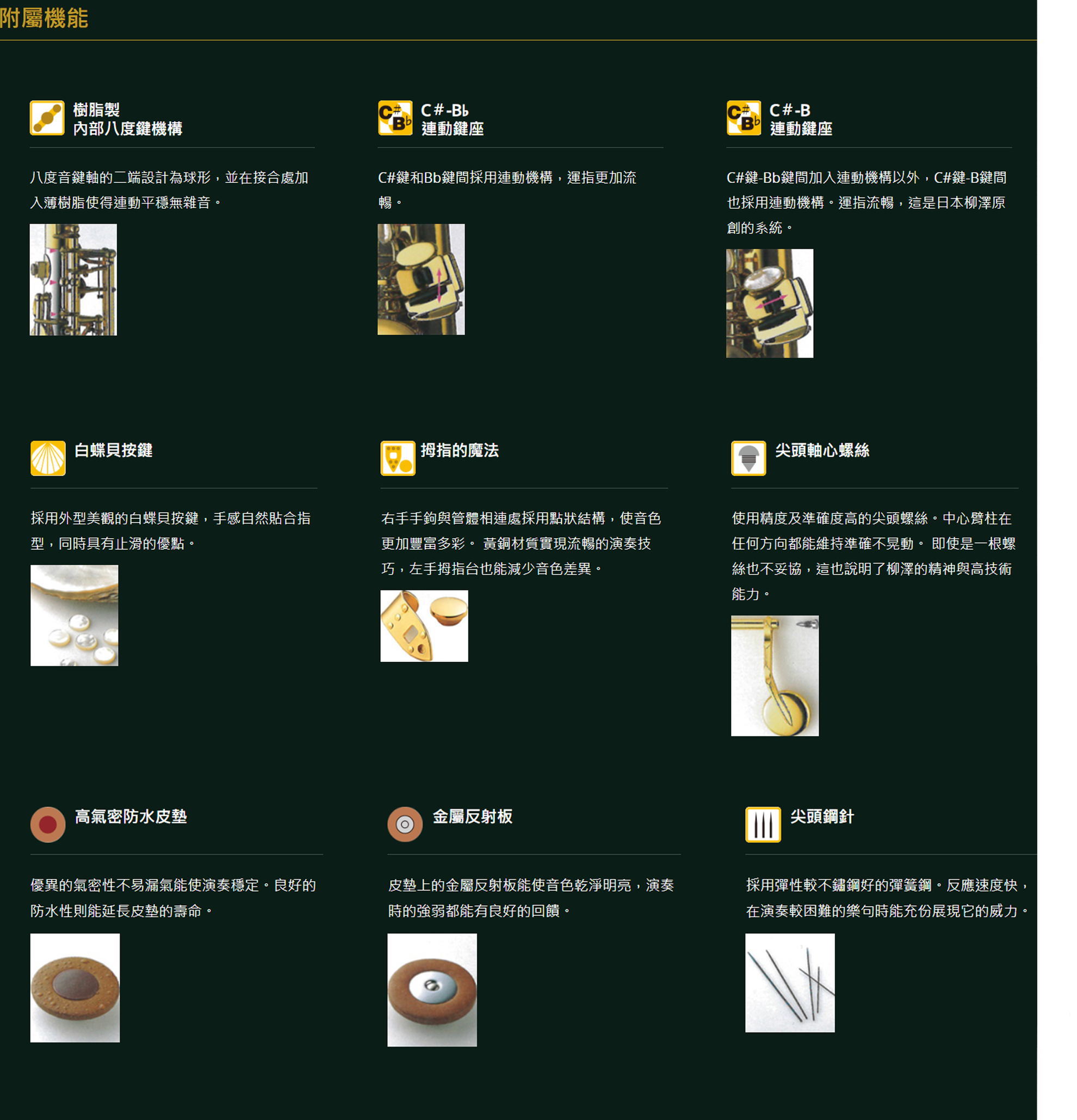S-WO20 是柳澤高音薩克斯風的旗艦款之一,承襲前代 S-992 的精密工藝,並進一步提升演奏體驗: