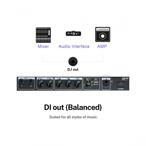 內建三段式 EQ(高音/中音/低音),讓你依據樂器特性與空間環境,自由調整最適合的聲音曲線。
