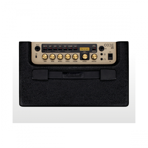 Marshall CODE 25,不只是音箱,而是一個讓你隨時啟動靈感、釋放音樂熱情的平台。不論是在練習室、房間,或是小型表演舞台,帶上它,讓你的聲音響徹每一個角落。