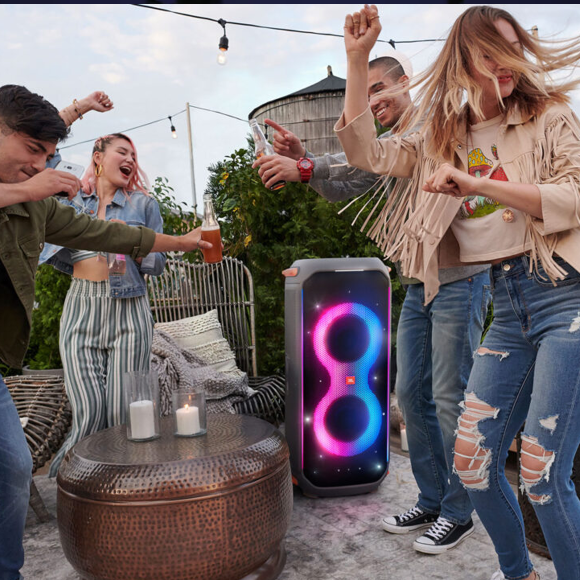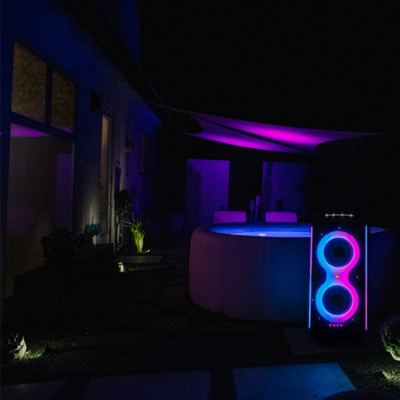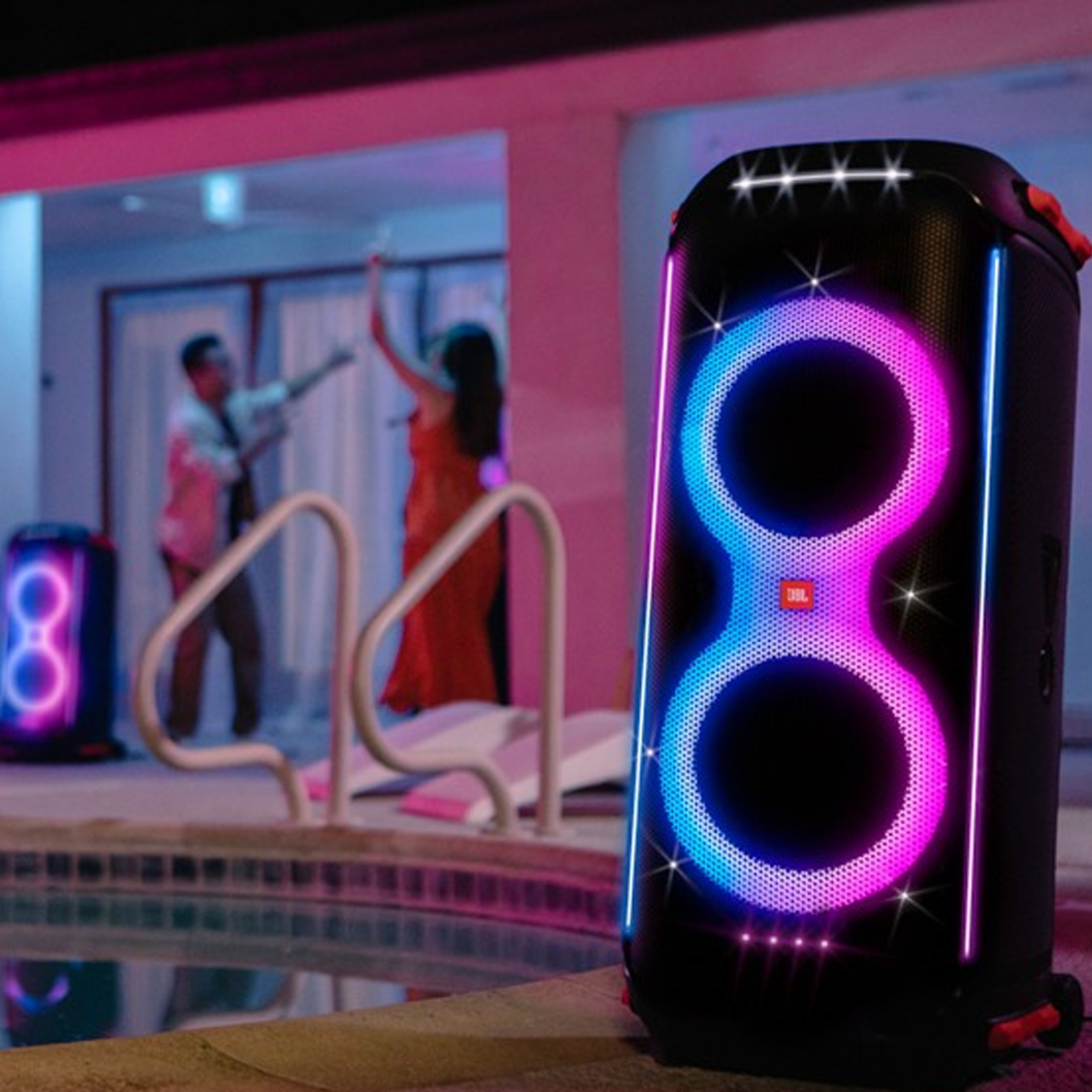 防潑水的 PartyBox 710 讓您的下一場活動成為一場真正的派對、音樂會或夜店。其獨特且色彩繽紛的燈光秀與 JBL Original Pro Sound 同步。極簡、直覺式的上方面板控制項與 PartyBox 應用程式,讓您打造更高階的音樂與視覺體驗。可自訂閃爍的閃光燈以及美妙音效,包含雙聲道設定的高音喇叭和豐富的低音喇叭。一鍵式 True Wireless Sound 即可立即配對兩個 PartyBox 710,以滿足更多人群需求。擁有易握把手和堅固的車輪,無論在何處舉行派對,都能持續美好時光。