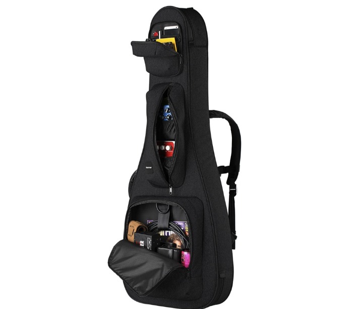 多層儲物空間:配備多個功能性儲物口袋,適合存放譜本、電纜、調音器、效果器等音樂配件。這些口袋的設計簡潔實用,方便取放。