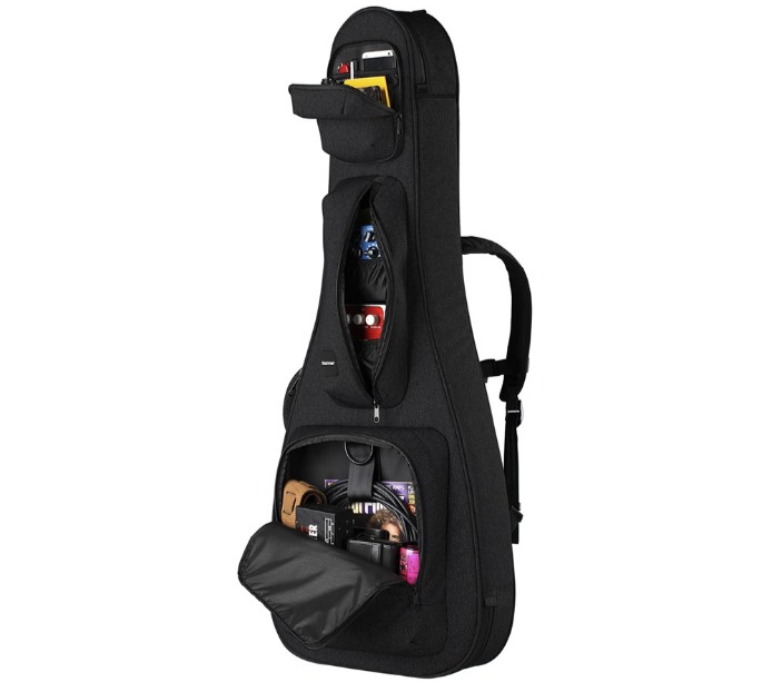 收納空間:具備多個口袋與隔層,方便放置效果器、樂譜、配件等其他吉他用具。口袋設計精巧,能夠確保物品的安全和方便取用。