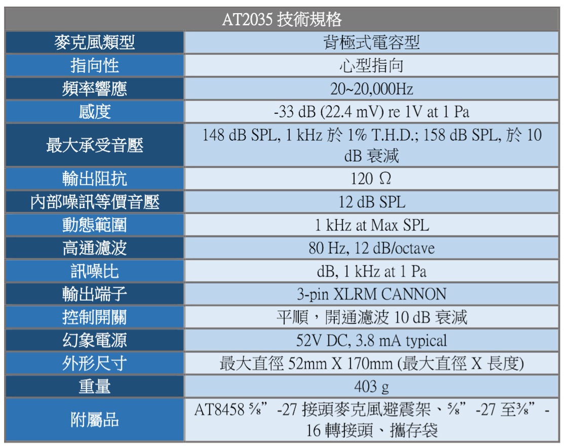 Audio Technica AT2035心形指向性電容型麥克風