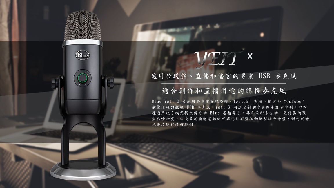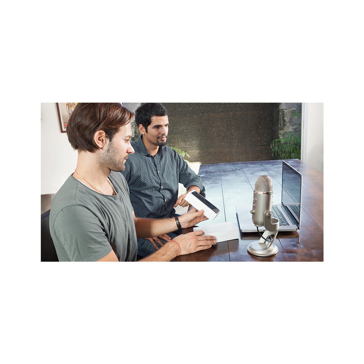 誰需要學習曲線?Yeti 設計時將方便、不麻煩的工作流程納入考量。使用隨附的桌面麥克風支架,或直接連接到麥克風支架,可以在幾秒鐘內就完成設定。使用方便使用的控制項調整麥克風增益、收音模式、耳機音量或是靜音/取消靜音。通過 Yeti 的側向操作舒適地進行錄製,只需在與 Blue 標誌的同一側說話、唱歌或播放,Yeti 就能擷取專業品質的聲音
