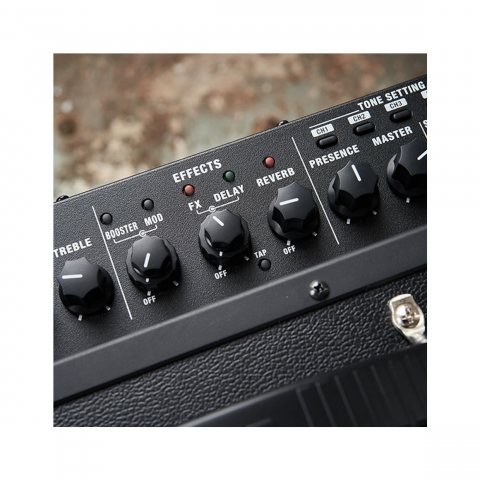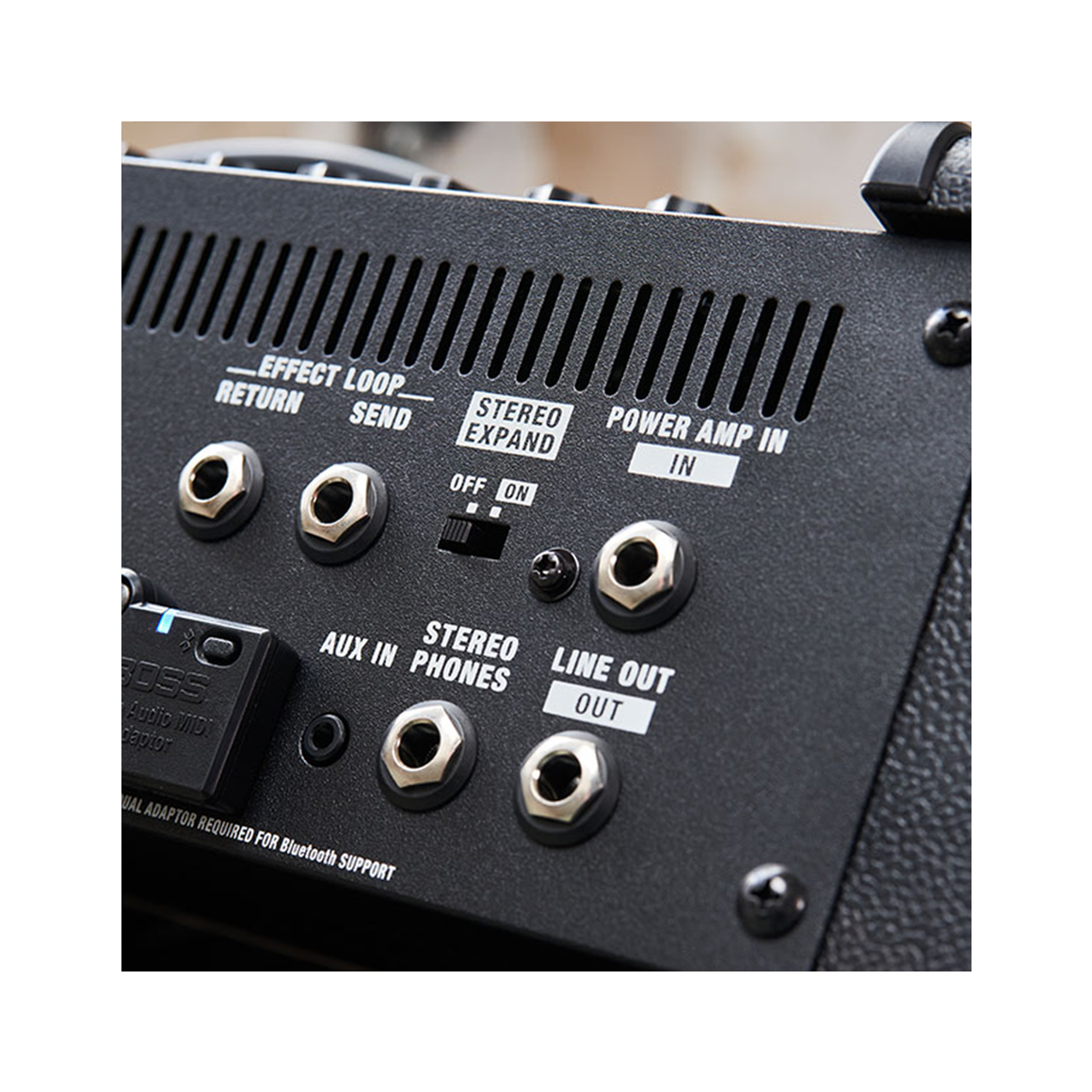 搭載來自 BOSS 經典效果器系列的五大類別效果區,皆可同時啟用,內含 15 種效果類型。更可透過 BOSS Tone Studio 從 60 種效果中自由配置,自訂參數,並可加購藍牙轉接器進行無線調整。