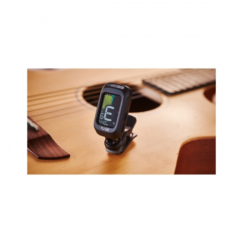 TU-02 的高對比度彩色顯示螢幕,可在任何您演奏的場所提供準確、清晰易看的調音。堅固、副墊片的夾可牢牢夾在樂器的琴頭,可旋轉調節讓您將顯示幕調整於最佳觀看角度。一個 CR2032 鋰電池可提供長達 24 小時的連續運作,自動關機功能可在調音器使用空檔節省電池耗電。