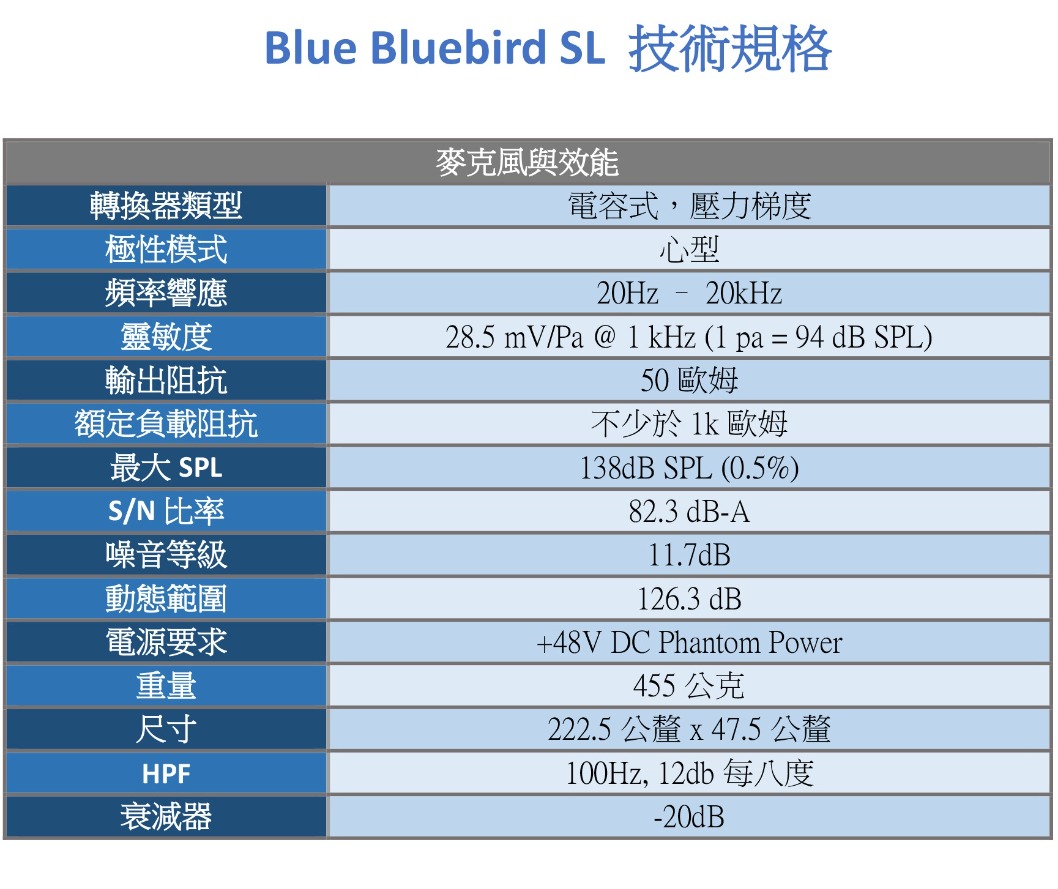 美國 Blue Bluebird SL 專業電容式麥克風