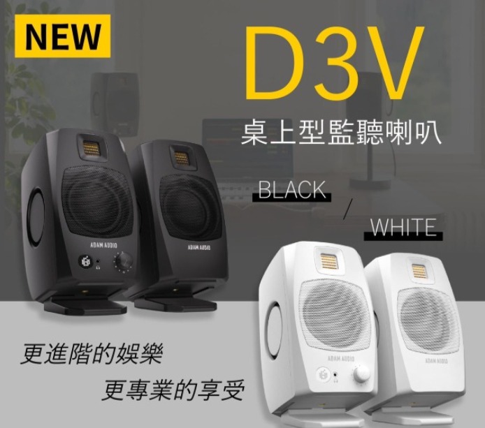 ADAM Audio D3V 是專為小型工作室、桌面音樂製作人和視聽娛樂設計的高品質桌上型監聽喇叭。其結合了創新的聲學設計、數位訊號處理 (DSP) 和靈活的安裝功能,為用戶提供準確、清晰且自然的音頻體驗。