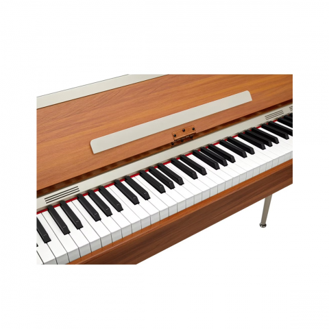 木質紋理搭配金屬飾條,呈現極簡美學風格,輕鬆融入居家空間,兼具鋼琴實用性與家飾質感。