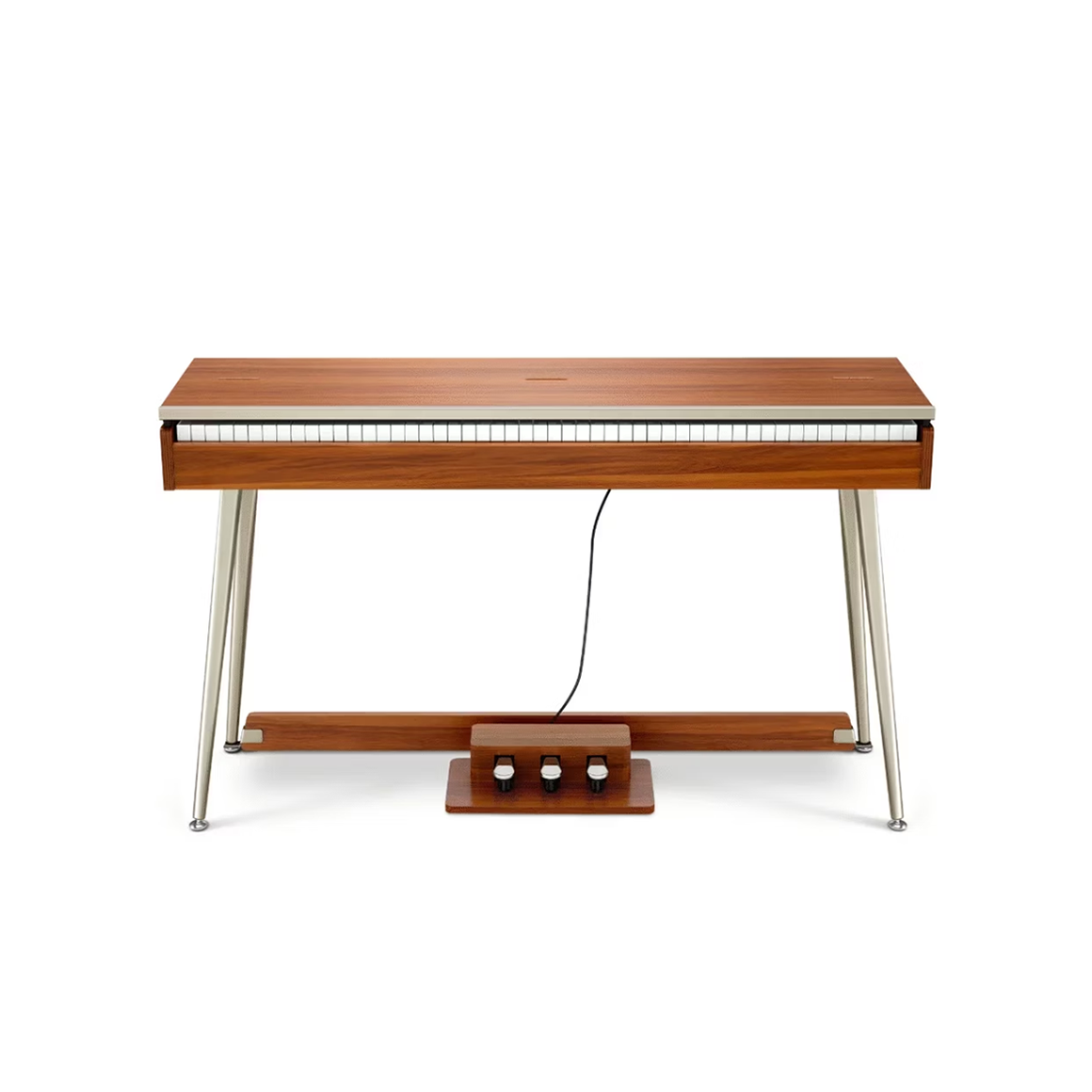 木質紋理搭配金屬飾條,呈現極簡美學風格,輕鬆融入居家空間,兼具鋼琴實用性與家飾質感。