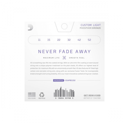 XS的每條纏繞線都具有超薄的薄膜塗層,以及在第一與二弦塗上獨特的聚合物處理,因此提供了高水平的保護,以及最大的使用壽命和非凡的平滑手感。XS還具有NY Steel高碳芯線和普通弦線,以及我們獨有的Fusion Twist,可提供無與倫比的強度和音調穩定性。XS是有史以來最具創新性的塗層弦。