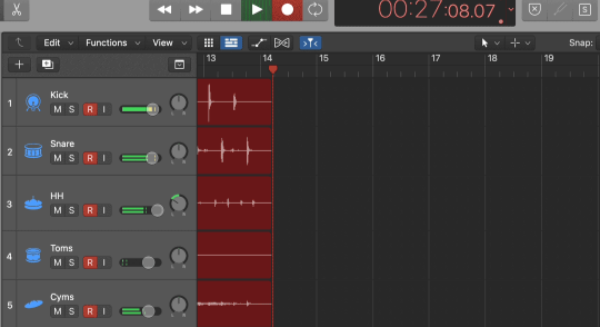 - “鼓點範圍”會在時間線上顯示你的打擊點
