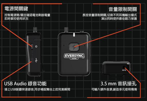 ---EverSync 是兼具功能與使用便利性的無線監聽系統,讓演出者在不同的場合,都能輕鬆串接獲得清楚的監聽音質,優化演奏品質與觀眾體驗。