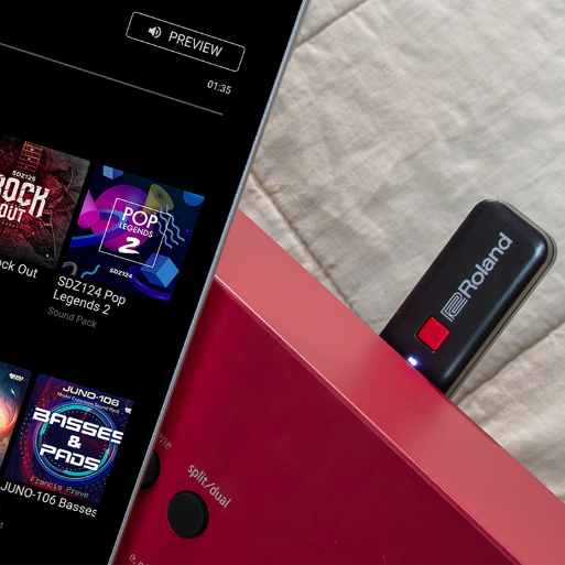 想要激發更多靈感嗎?在 Roland Cloud 上,將有越來越多的優質音色和令人興奮的新節奏可供探索。GO:KEYS 3 也支援 Roland Cloud Connect 選購的無線轉接器,可讓您從智慧型手機瀏覽、試聽和下載 Roland Cloud 內容。