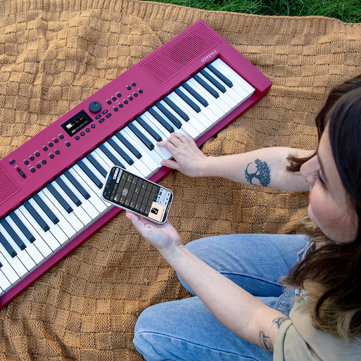 聆聽您最喜歡的音樂是激發新創作靈感的絕佳方法。透過藍牙、USB 隨身碟或類比音訊輸入,播放音樂庫中的歌曲並一起演奏。接著,使用center cancel 中央音頻消音功能去除人聲,自行演唱。GO:KEYS 3 也支援藍牙 MIDI 和 USB 音訊/MIDI 傳輸,為進一步發揮創作開啟了一扇門,便於進入電腦或行動裝置音樂應用程式製作音樂。