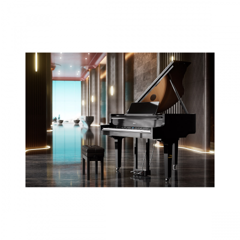 GP-9M 內建先進的 Roland Piano Reality 技術,它是一個複雜的生態系統,連結了聲音引擎、鍵盤、踏板、音訊元件和喇叭。每一個部分經過精心設計,可以完美地協同工作,讓演奏者以前所未有的表現力和真實感,體驗這部美妙樂器的純粹美。