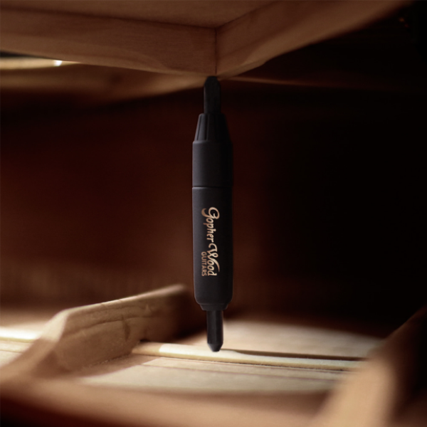 採用新穎的製作方法,在面板與背板之間放入一根音柱,可切換不同的材質而造成音色改變,讓同一把吉他有截然不同的多種音色變換,此音柱Gopherwood全系列皆可使用(每把琴內本身就附有一根音柱),也可另購音柱包讓您擁有更多音色切換的選擇哦~~