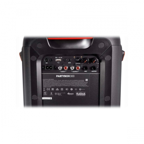 JBL PartyBox 300 聲音洪亮,自豪感十足,準備舉辦派對吧!JBL PartyBox 300 是一款功能強大的藍牙派對喇叭,具有極佳的 JBL 音質及生動的燈光效果。憑藉其可充電電池及 12V 直流輸入,您可隨身攜帶舉行派對。只需插入麥克風或吉他,然後走上舞台並且透過藍牙或 USB 記憶棒播放音樂清單。利用 TWS 功能無線連接兩個 PartyBox 喇叭,或者從一個 RCA 輸出有線連接到另一個 RCA 輸入。然後,盡情享受派對! 規格 最長音樂播放時間(小時): 18 輸出功率 (w) : 240 動態頻率響應範圍(Hz): 45Hz-20kHz 尺寸 (cm) : 31 x 69 x 32 重量(lbs) : 34.9 藍牙頻率 : 45Hz-20kHz 盒內所裝配件 - 1 個 JBL Party Speaker