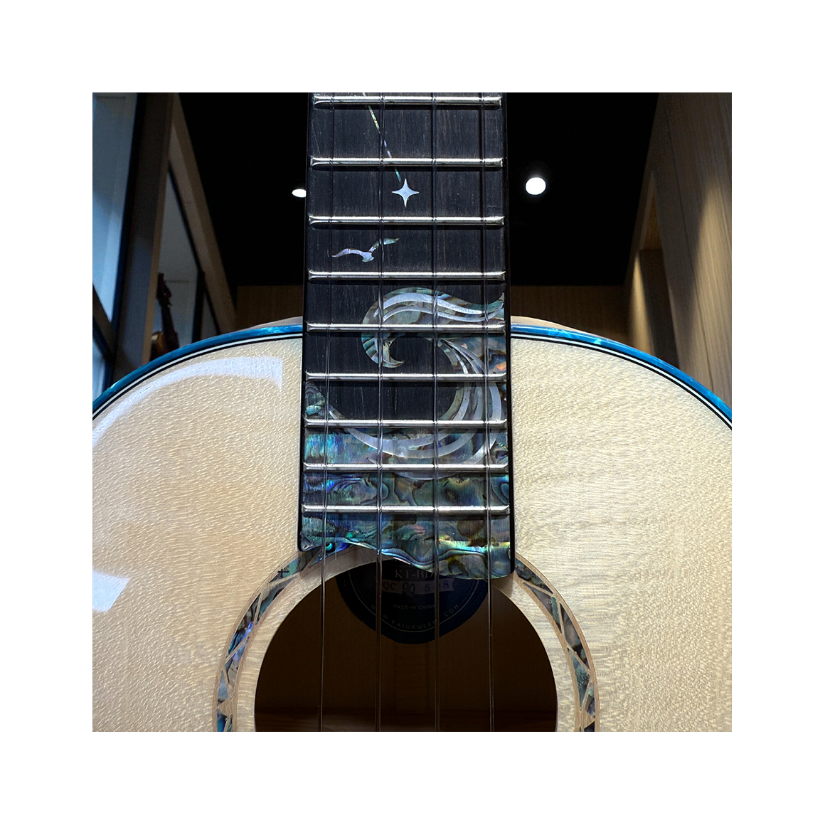 指板上以 北斗七星與海浪意象 珠貝細工點綴,象徵指引與遠航,靈感來自夜空與大海的連結。