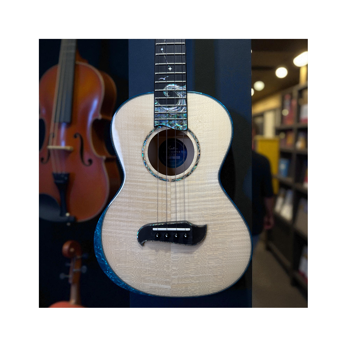 指板上以 北斗七星與海浪意象 珠貝細工點綴,象徵指引與遠航,靈感來自夜空與大海的連結。