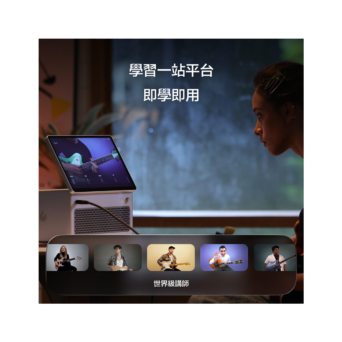內建多組官方效果器與音色模型,支援木吉他、電吉他與烏克麗麗;搭配專屬 App,可同步管理音色、練習、錄音與直播,是創作者與樂手的全能工具.