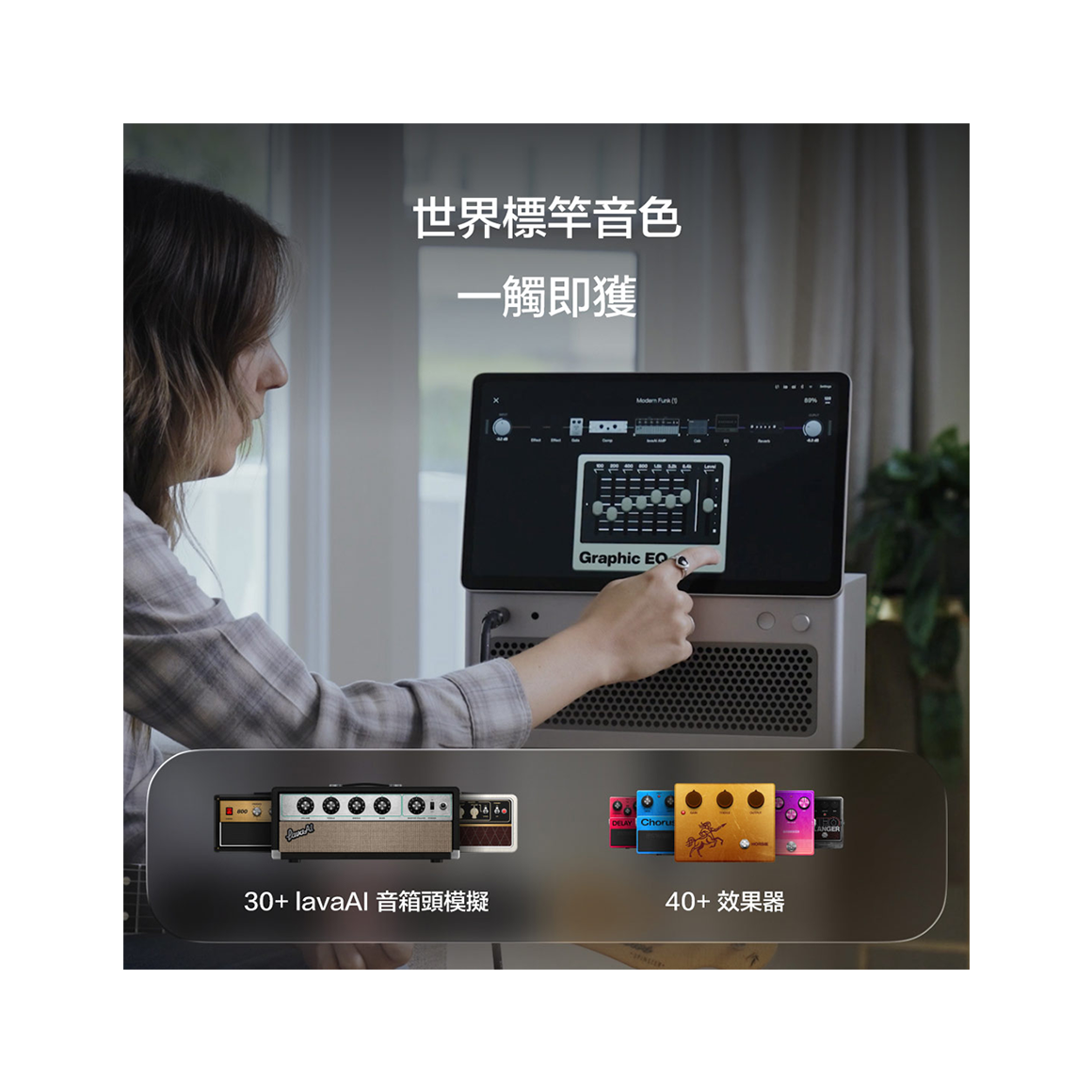 LAVA STUDIO 是一款為現代樂手打造的 智慧型便攜音箱,集結音箱、AI 效果器、觸控操作介面功能於一身。