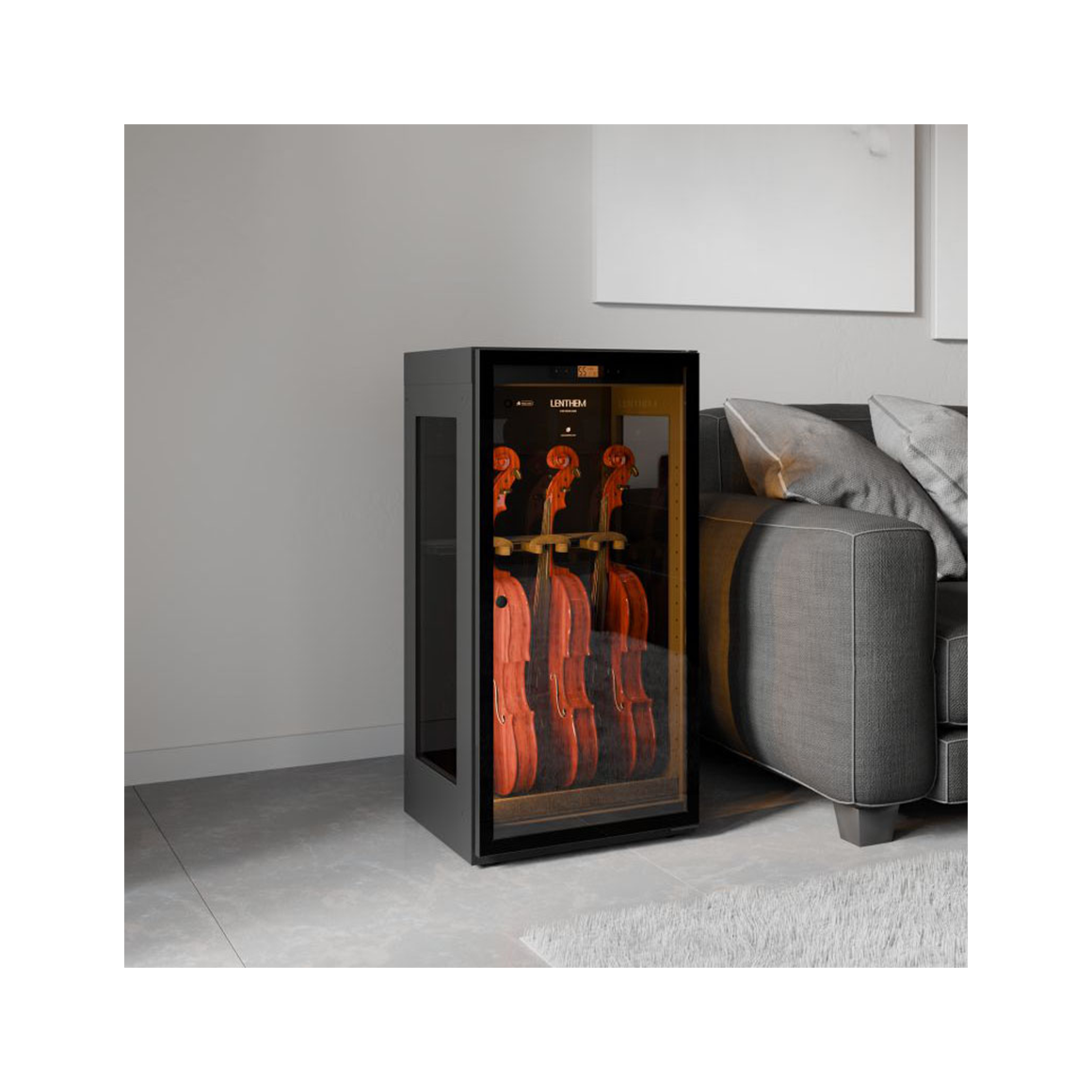 LENTHEM DMI-145DT 防潮箱,專為小提琴與中提琴打造,兼顧展示效果與專業防潮功能,讓樂器保持最佳狀態,音色與價值歷久如新!
