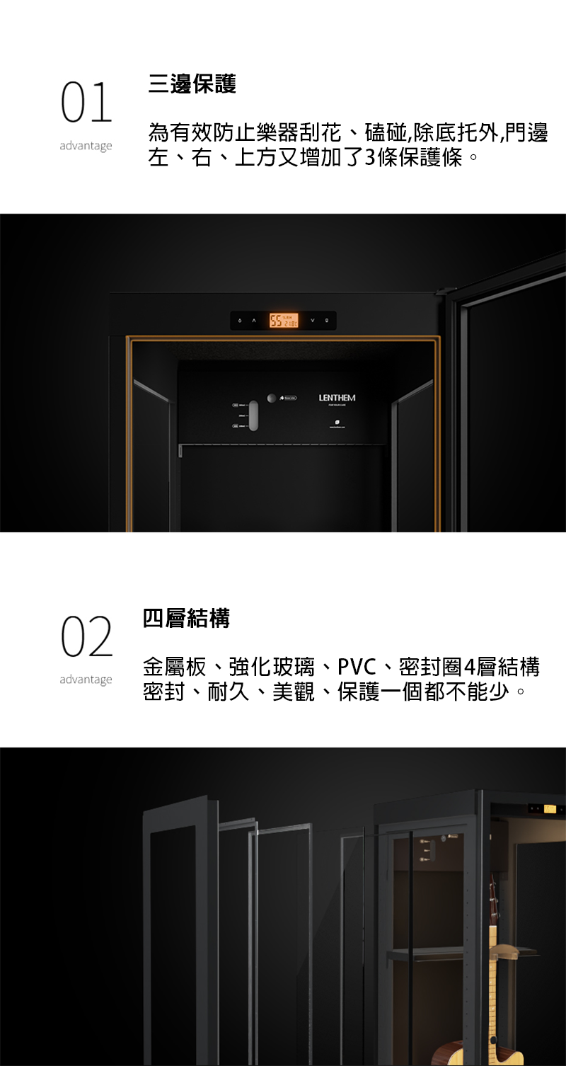 LENTHEM DMI-355DT 大提琴防潮箱,結合專業防潮與高質感展示設計,專為大提琴打造,讓樂器在穩定環境中長久維持最佳音色與價值。