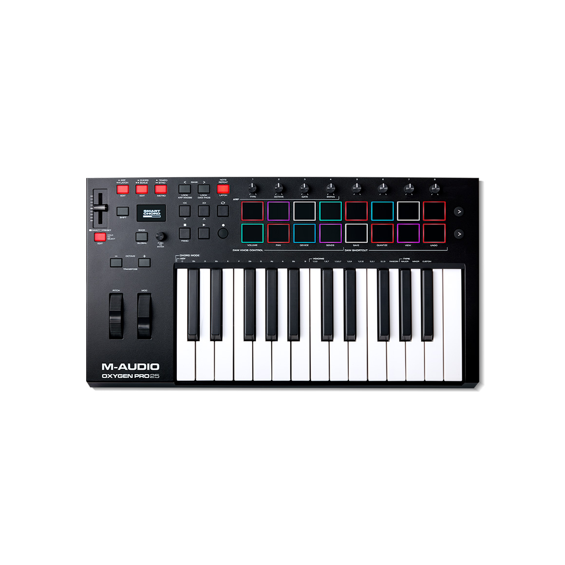 Oxygen Pro 25 是一款功能強大的 25 鍵 USB 供電 MIDI 控制器,可讓您更輕鬆地創作您想要製作的音樂!新的 Oxygen Pro 控制器打開了表達和創造力的世界,讓您的製作理念比以往任何時候都更加無縫。從用戶和藝術家那裡得到反饋,這些控制器是終極的工作室和現場表演工具,讓您可以專注於創作音樂,而不是編寫軟件。無論您想在旅途中還是在工作室創作音樂,M-Audio Oxygen Pro 系列都非常靈活,適合您的工作流程。