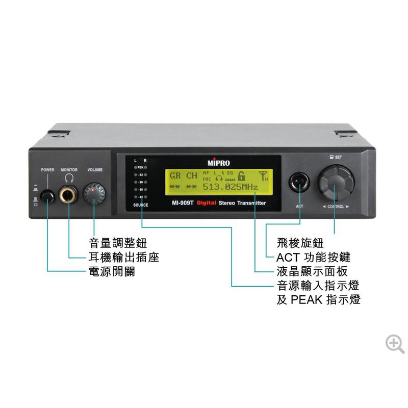 MIPRO MI-909 無線立體聲監聽系統MI-909R + MI-909T 為發射器+接受器組