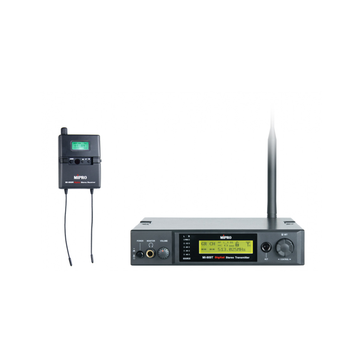 • MI-909系列是使用在舞台演出的內耳監聽系統,用以取代傳統複雜的音響監聽設備,不僅具有類比系統一樣穩定的無線傳輸效果,在音質表現方面,因DSP數位音質處理與數位選訊技術的搭配下,提升了噪訊比及動態範圍,展現原音完美重現的最佳音質,獲得前所未有的完美特性。