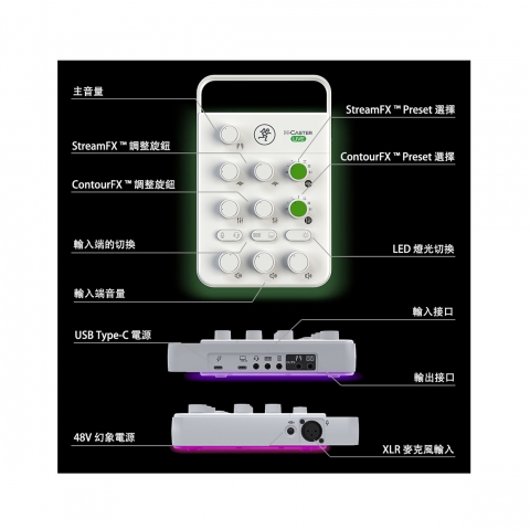 想要在您的串流媒體、播客或視頻中加強您的音頻嗎?M•Caster Live 絕對是讓您用於手機和 Mac/PC 的最好便攜式音頻 解決方案。插上麥克風,調好聲音,然後開始直播。就這麼簡單。 從 Instagram 和 Tik Tok 上的快速流和視頻到 Twitch 和 YouTube Live 上的通宵達旦節目,M•Caster Live 讓您無需成為音 頻迷即可輕鬆為您的粉絲提供專業錄音室品質的聲音。 特色 * 可直接連接到行動裝置的耳機接口 * ContourFX ™ 讓你能預先選擇一個最完美的人聲 * StreamFX ™ 可以透過有趣的變聲效果畫龍點睛 * 具有可調色 RGB LED 燈條 * 給你最原始的音質和無與倫比的靈活性 * 直觀清晰的按鍵 * 可連接麥克風與耳機 * 隨插隨用 附帶配件 * USB傳輸線 *1/8” TRS / 音源線 * 1/8” TRRS 音源線(用於智能手機) * 電源供應器 規格 接孔:Type-C(供電)/ Type-C(連接電腦)/ 3.5 音源輸入孔*2 / 3.5 手機連接孔 / 3.5 耳機輸出孔 / 3.5 外接喇叭輸出 / XLR 麥克風輸入孔 支援系統:Win 10 以上(32/64);Android 9 以上;MAC OS X 10.8 以上(32/64);iOS 13 以上 尺寸:5.2 x 12.9 x 20.3(公分) 重量:500(克)