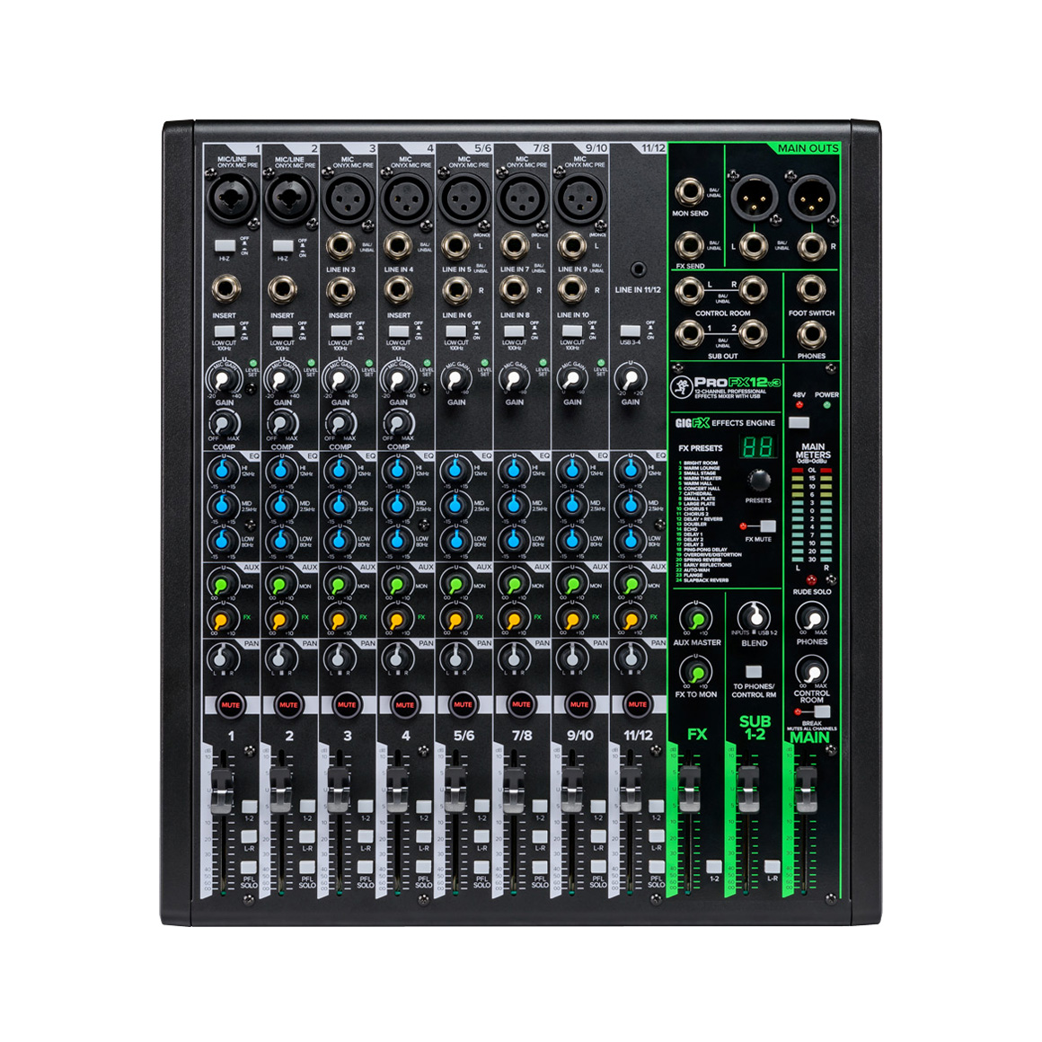Mackie ProFX12v3 具有七個屢獲殊榮的 Onyx 前置放大器和一個多功能的 GigFX 效果引擎,讓您能夠以高達 192 kHz 的採樣率獲得豐富多彩的高分辨率錄音。最重要的是,Mackie ProFX12v3 包括 Waveform™ OEM 軟件,為您的設置提供您應得的專業工具包。 特色 * 配有 Onyx 麥克風前置放大器 * GigFX™ 高解析度效果引擎 * 專業級 2×4 192 kHz USB 錄製 * 可在電腦上創建混音,再發送到混音器 * 內建 Compressor * 零延遲監聽功能 * Built-like-a-tank™ 專業技術 * 內含 Waveform™ OEM 軟體和多個混音用插件 規格 頻道:12(8 x單聲道,1 x立體聲) 計算機連接:USB(2 x 4) A / D分辨率:24位/ 192kHz 推子:11 x 60mm推子 輸入-麥克風前置放大器: 2 x XLR-1 / 4“組合鍵(麥克風/線路/ Hi-Z),5 x XLR(麥克風) 輸入-行:2 x 1/4英寸,6 x 1/4英寸(3 x立體聲),1 x 1/8英寸(立體聲) 輸出-主要:2 x XLR,2 x 1/4“(左/右),2 x 1/4”(控制室) 輸出-其他:2 x 1/4“(子組出) 輔助發送:1 x FX Send(post),1 x Monitor Send(pre) 發送/返回I / O:1 x 1/4“(FX發送),1 x 1/4”(顯示器發送) 插入:4 x 1/4“(通道) 耳機:1 x 1/4英寸 USB:1 x B型 其他I / O:1 x 1/4“(腳踏開關) 均衡器頻段:3頻段均衡器,100Hz低切濾波器 信號處理:4個通道壓縮器 能量源:12V DC電源