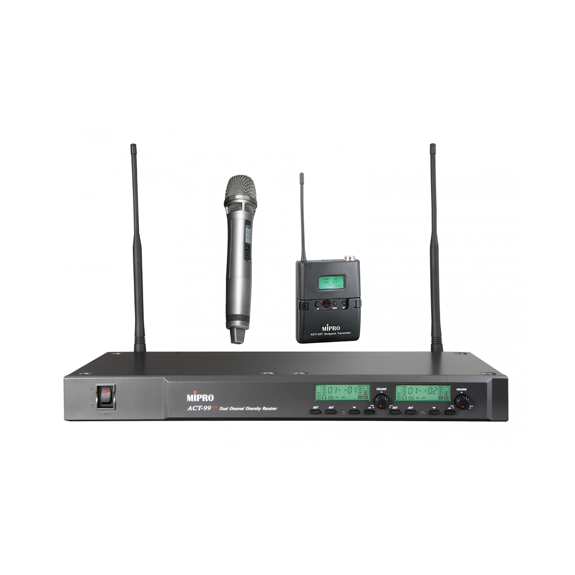 本系列接收機搭配標準的ACT-999H手握式無線麥克風及ACT-32T佩戴式發射器,也可以與MIPRO其他發射器相容。