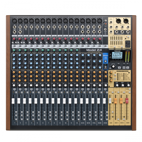 除了多組立體聲線路輸入外,Model 24還具有16個高級TASCAM麥克風前級放大器,從一開始就提供錄音室品質的音訊效能。在錄音的時候TASCAM Model 24允許音樂家和工程師同時將最多24個音軌(24bit / 48kHz解析度)直接錄製到SD卡,同時支援4個音軌輸入/輸出。一旦完成拍攝,Model 24可以透過控制台輕鬆播放任何或所有錄製的音軌,以便立即進行混音。