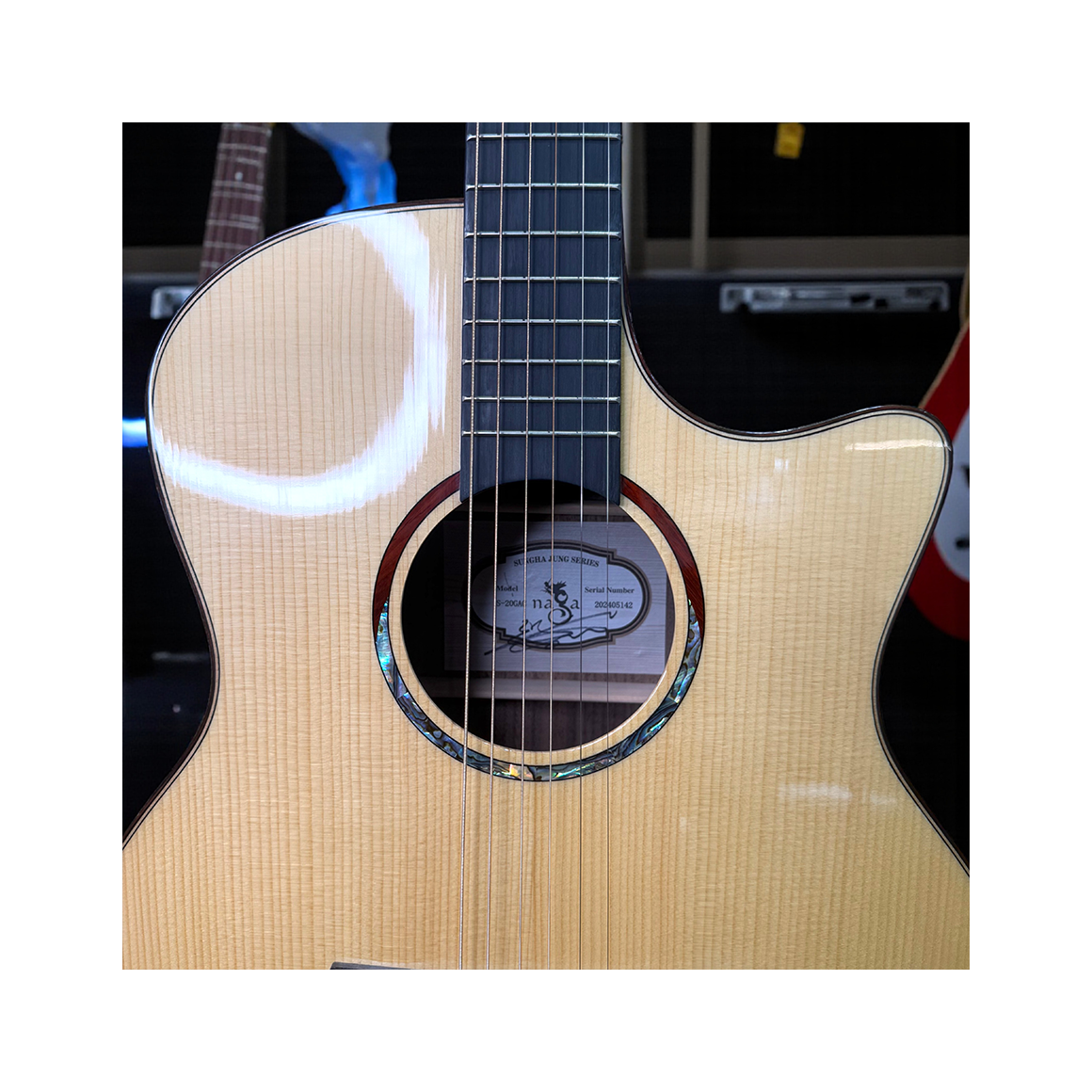 Naga Guitars S-20 GAC 「光」系列,不僅是一把面單木吉他,更承載了鄭晟河的精神與音樂信念。從木材選用、工藝鑲嵌,到專屬設計與文化寓意,都展現對細節的極致追求。