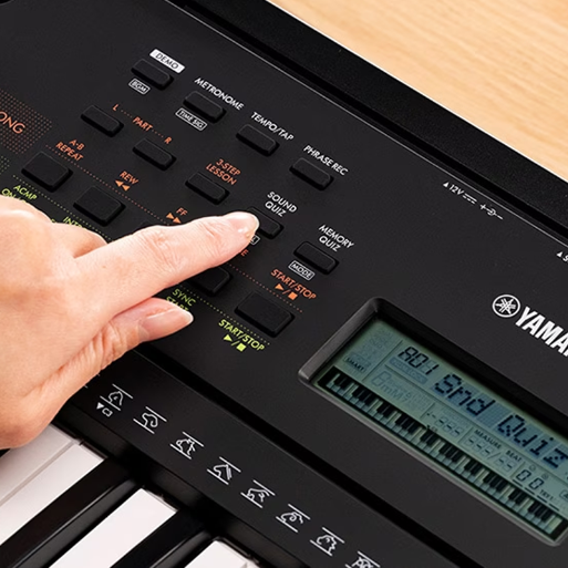 除了內建許多優美的鋼琴音色外,這款手提電子琴還內建各種逼真的樂器音色,包括吉他和貝斯、打擊樂器和鼓,甚至還有有趣的音效,包括狗叫聲和貓叫聲。當演奏或練習時,請選擇您最喜歡的音色。您還可以享受在電子琴中所搭載的Yamaha平台鋼琴音色的美妙效果!