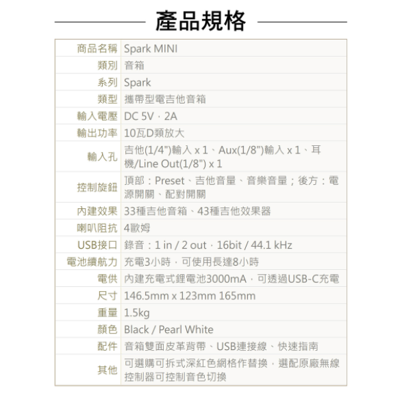 Positive Grid Spark MINI 多功能藍芽吉他音箱 珍珠白