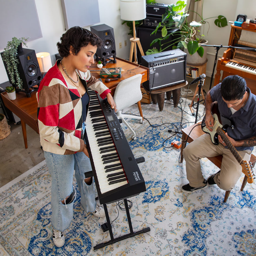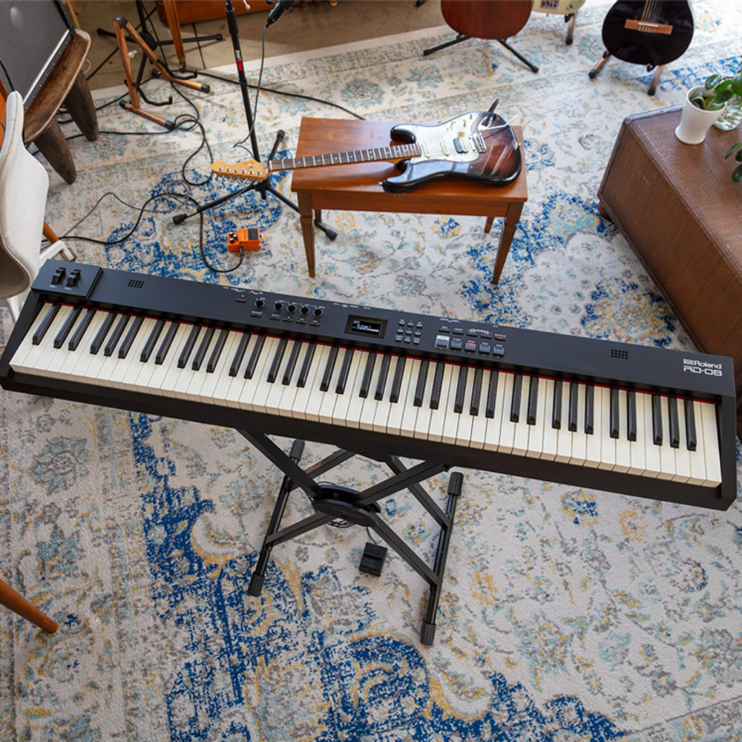 RD-08 是活躍樂手的理想舞台鋼琴。友善的重量和流線型的尺寸,使其易於搬移,堅固耐用的結構可勝任多年的重度使用。內建立體聲喇叭可發出飽滿、餘音繞樑的聲音,在家中練習、排練,以及在小型場地表演時無需外接擴大音箱。