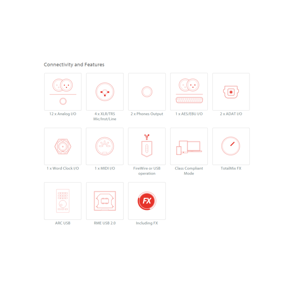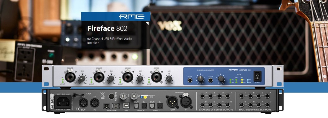 Fireface 802繼承了RME靈活可擴展音頻系統的傳統。通過後面板的雙ADAT光纖輸入/輸出很可以很容易地增加前置放大器和模擬輸入。輸入和輸出