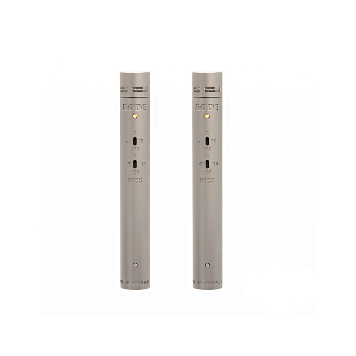 與NT5類似,RØDE NT55是一個小振膜真電容心形麥克風,有時也被稱為“筆型麥克風”。NT55添加量三段衰減(Pad)(0, –10dB, –20dB)和三段高通濾波器(High Pass Filter)(關,75Hz, 150Hz),並且包括可互換的全指向受音頭NT45-O。用於錄製原聲樂器、鼓、鈸和現場表演,緊湊的外部極化麥克風採用1/2吋受音頭,主動式的J-FET阻抗轉換器帶雙極性輸出緩衝器。其嚴謹的心形拾音模式也使得它非常適合用作室內的對話麥克風,也可使用麥克風支架或吊桿即可用於電影製作。為擴大NT5通用性,可更換全指向極頭(NT45-O)。 NT5麥克風採用堅固耐用鍍鎳外層,可作為一隻單一使用的麥克風或兩隻配對。 NT5電容話筒在澳大利亞設計和製造,還提供RØDE業界領先的10年保修。