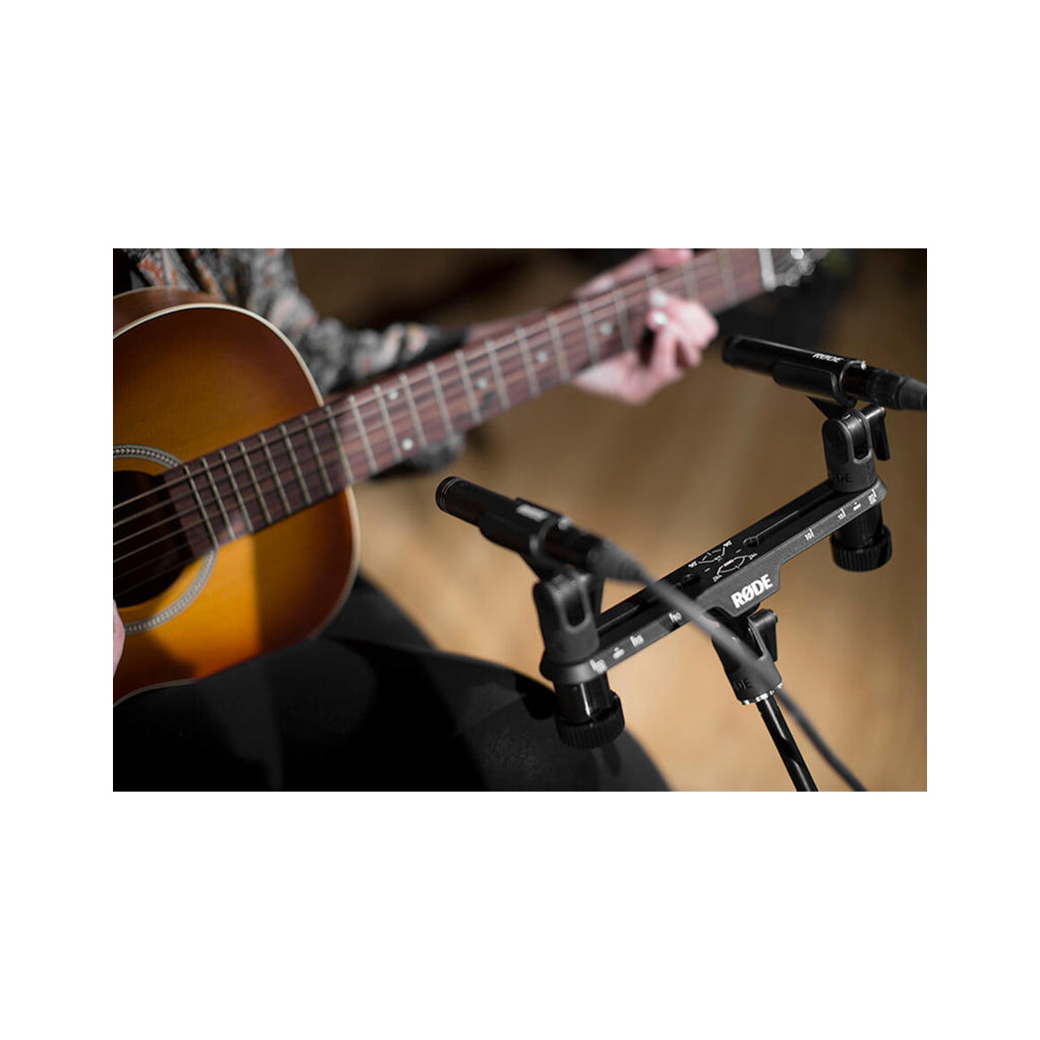 RØDE Stereo Bar是安裝一對麥克風為立體聲陣列的解決方案。RØDE Stereo Bar高達20cm的清晰明確間距,角度和測量指標方便ORTF和XY定位,使得它能夠快速,輕鬆地實現複雜的錄音陣列。5/8吋的螺紋附帶間距調整夾,方便層疊陣列定位,Stereo Bar材質為堅固的ABS結構,穩定耐用,能夠支撐RØDE K2等兩個大振膜麥克風的重量。