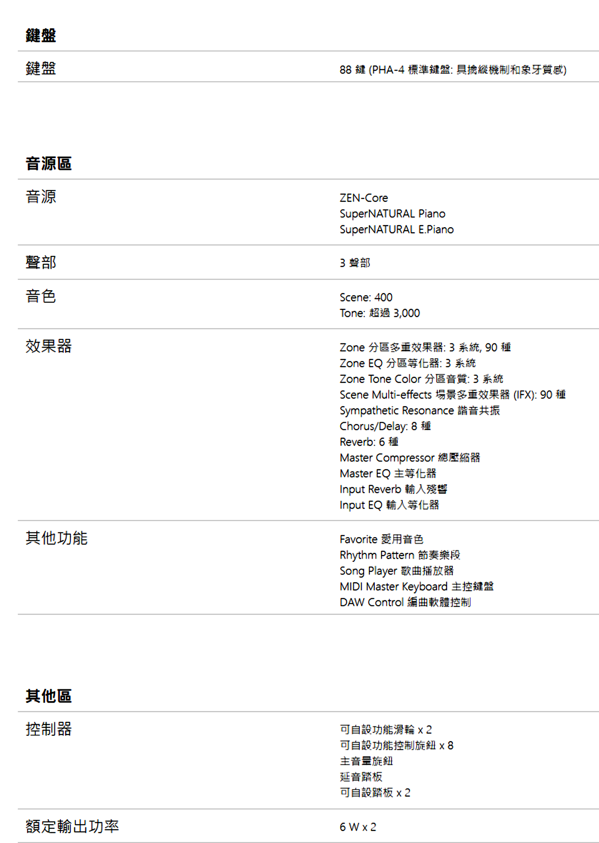 包含最新的 SuperNATURAL Acoustic Piano 3 擴充音色,讓演奏者能獲得更自然的層次與動態。
