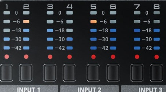 明亮、反應靈敏的LED儀表,可讓您一眼看到各個輸入和輸出頻道以及MONITOR OUT的等級,而專用的輸入頻道鍵與其他直覺的操控裝置,讓您在內建螢幕上簡易地瀏覽。MONITOR OUT區有專屬LEVEL旋鈕可控制音量,DIRECT MONITOR旋鈕可用於聆聽所選的輸入訊號的聲音。配備兩個耳機接孔,並配備各自專屬音量調節旋鈕,讓音樂家與錄音工程師無須額外的硬體設備就能同時監聽。