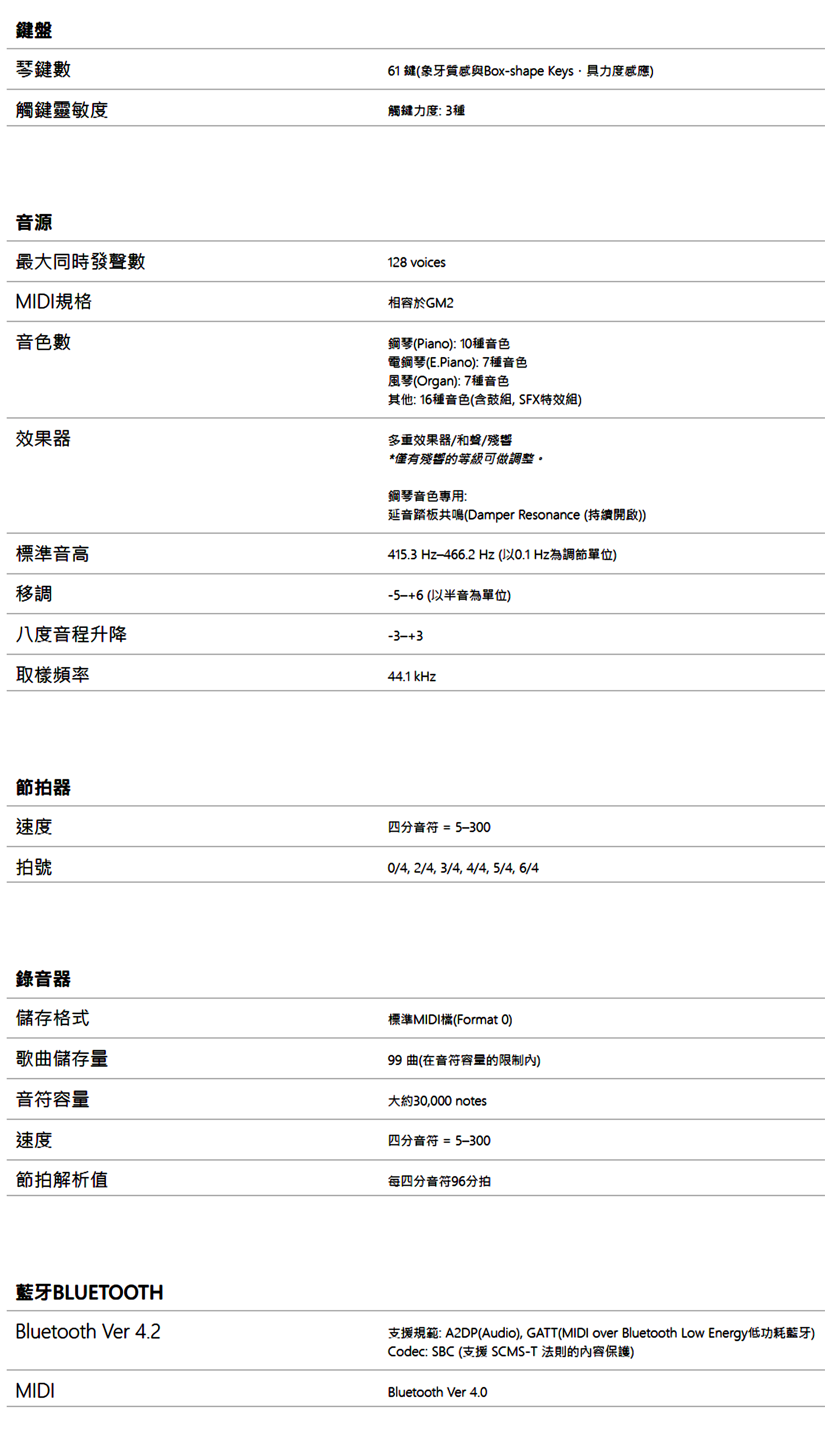 -支援 Bluetooth MIDI,可搭配智慧型手機或平板使用各類音樂 App