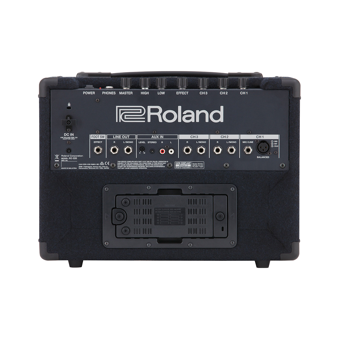 最值得擁有的鍵盤音箱超過二十年來,各界各地的樂手們信賴Roland的KC音箱,它們擁有高逼真度的聲音、內建混音功能、多種連接性能,而且經久耐用。最新一代依然帶著久享盛名的KC一貫的品質,同時提供為當今職業音樂家需求而調節的新增強功能。有KC音箱在您身邊,您將可以全面掌控您的舞臺演出,讓您展現絕佳動人聲音,每次帶來最好的演出狀太。每次演出效果都將讓您深感值得。 三頻道的KC-220提供全音域立體聲聲音,可供電池供電,是一款極致的便攜鍵盤音箱。以其內建DSP效果器、專用輔助輸入端子,並支援XLR人聲用麥克風,也能勝任作為小型PA。超便攜的外型可展現強大的聲音,KC-220是排練、街頭表演以及各種小型演出必備的音箱。 特色- 可用電池供電的立體聲鍵盤音箱