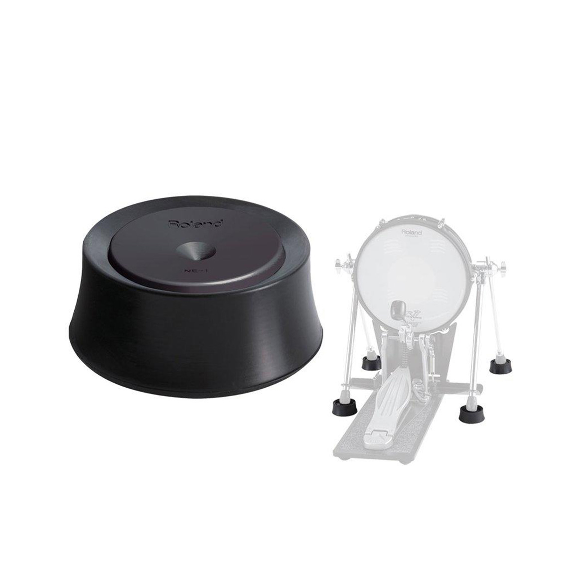NE-1 Noise Eater吃音墊,是一款小型隔音腳墊,用來搭配使用V-Drums鼓組的大鼓打擊板與hi-hat架,並可依需要與NE-10吃音墊(另行選購)搭配使用。它具有獨特的橡膠緩衝結構,放置在大鼓打擊板與hi-hat架的每支腳,可有效地降低一般演奏時透過地面傳遞的噪音及振動。當NE-1搭配使用墊在大鼓與hi-hat踏板下方的NE-10吃音地墊,可讓使用者不再顧忌打擾家人或樓下鄰居,盡情地演奏