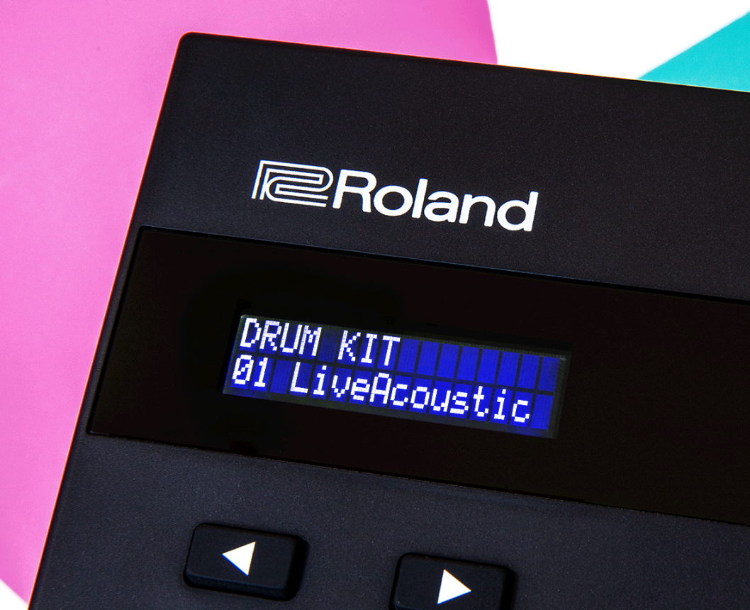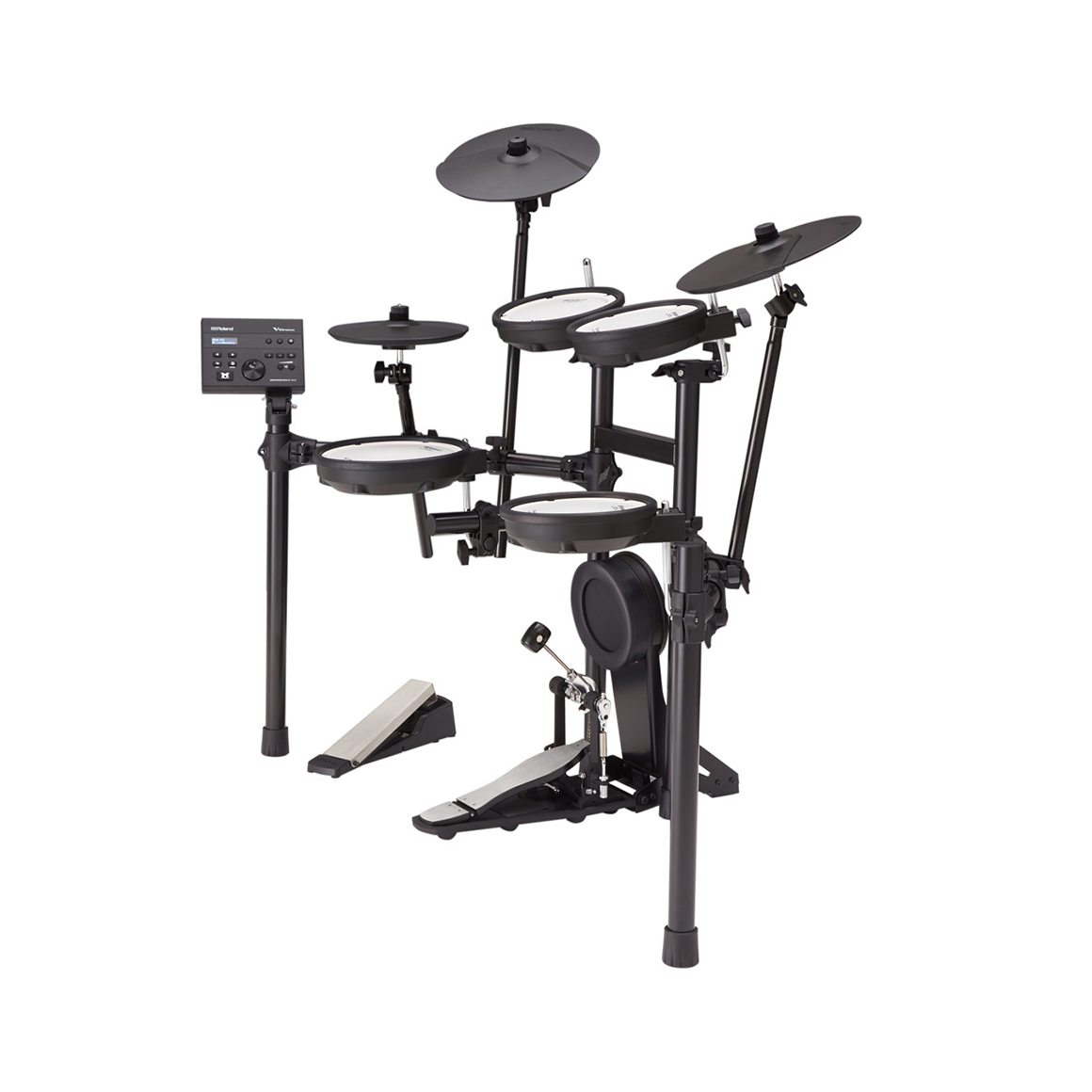 - 小鼓和中鼓打擊鼓使用 Roland 經典的雙層可調鬆緊度的網狀鼓面